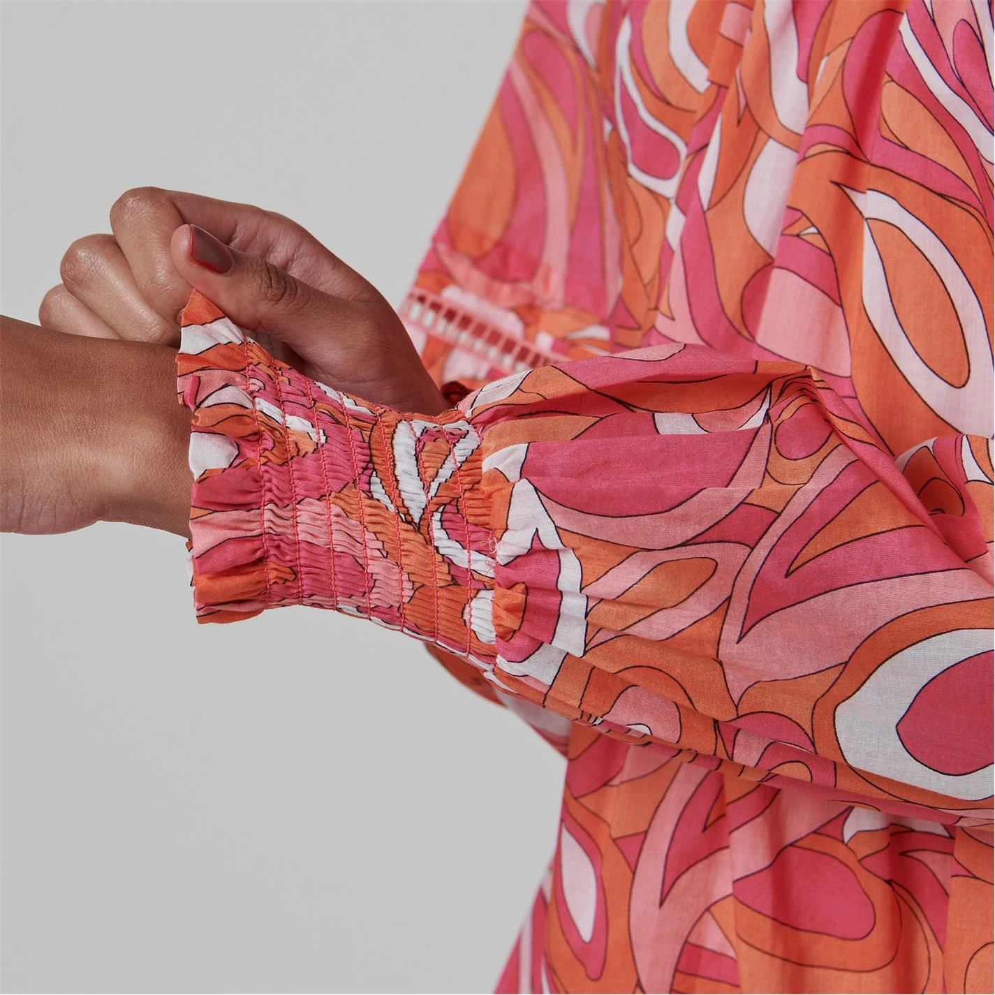 Add a vibrant print to your daytime dresses with the Swirl Mini Dress from Michael Kors. Featuring a psychedelic swirl print and tiered cut, this dress adds a 70’s style aesthetic to a modern cut dress. With long shirred cuff sleeves and neckline, style this mini with minimal accessories to keep all attention on this bold statement dress.