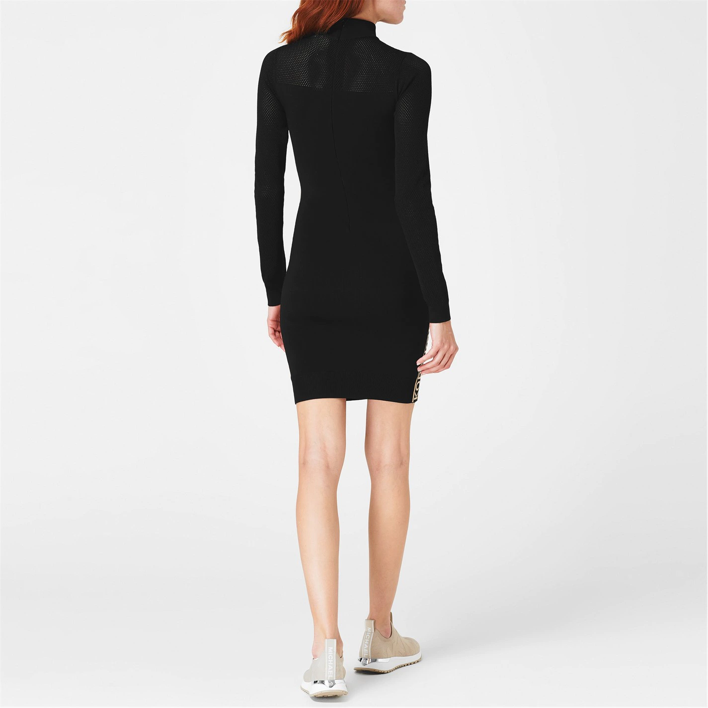 Enhance your collection with this MICHAEL Michael Kors Tape Mesh Dress. Constructed with back zip fastening and long sleeves for a classic look, it features comfortable ribbed trims and mesh panelling for breathable ventilation. This dress is a solid colouring throughout with signature logo tape and is complete with MICHAEL Michael Kors branding.